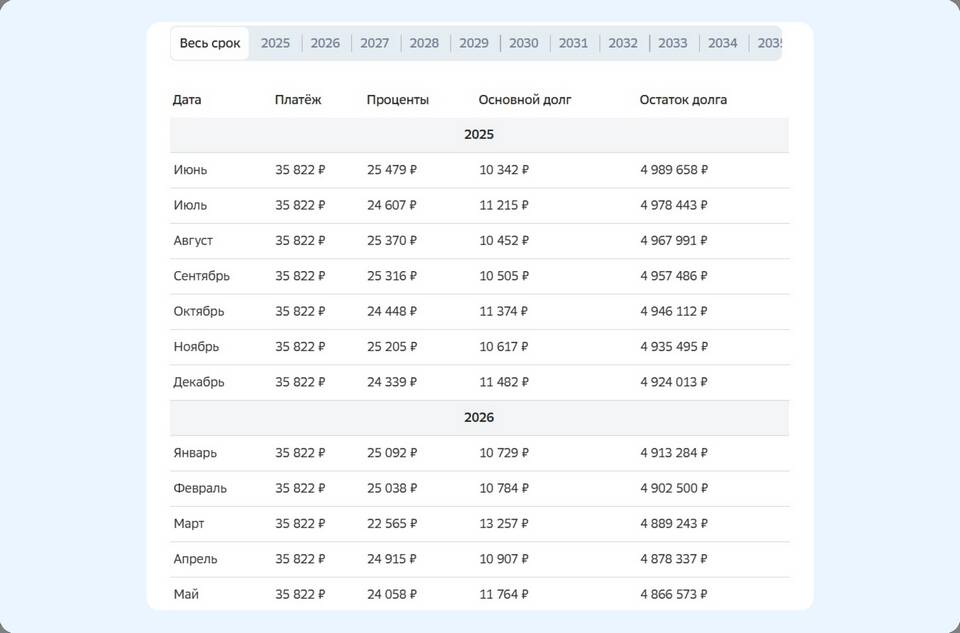 - Требует точного расчета остатка долга