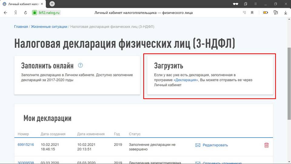 - Перейдите в "Подать декларацию 3-НДФЛ"
